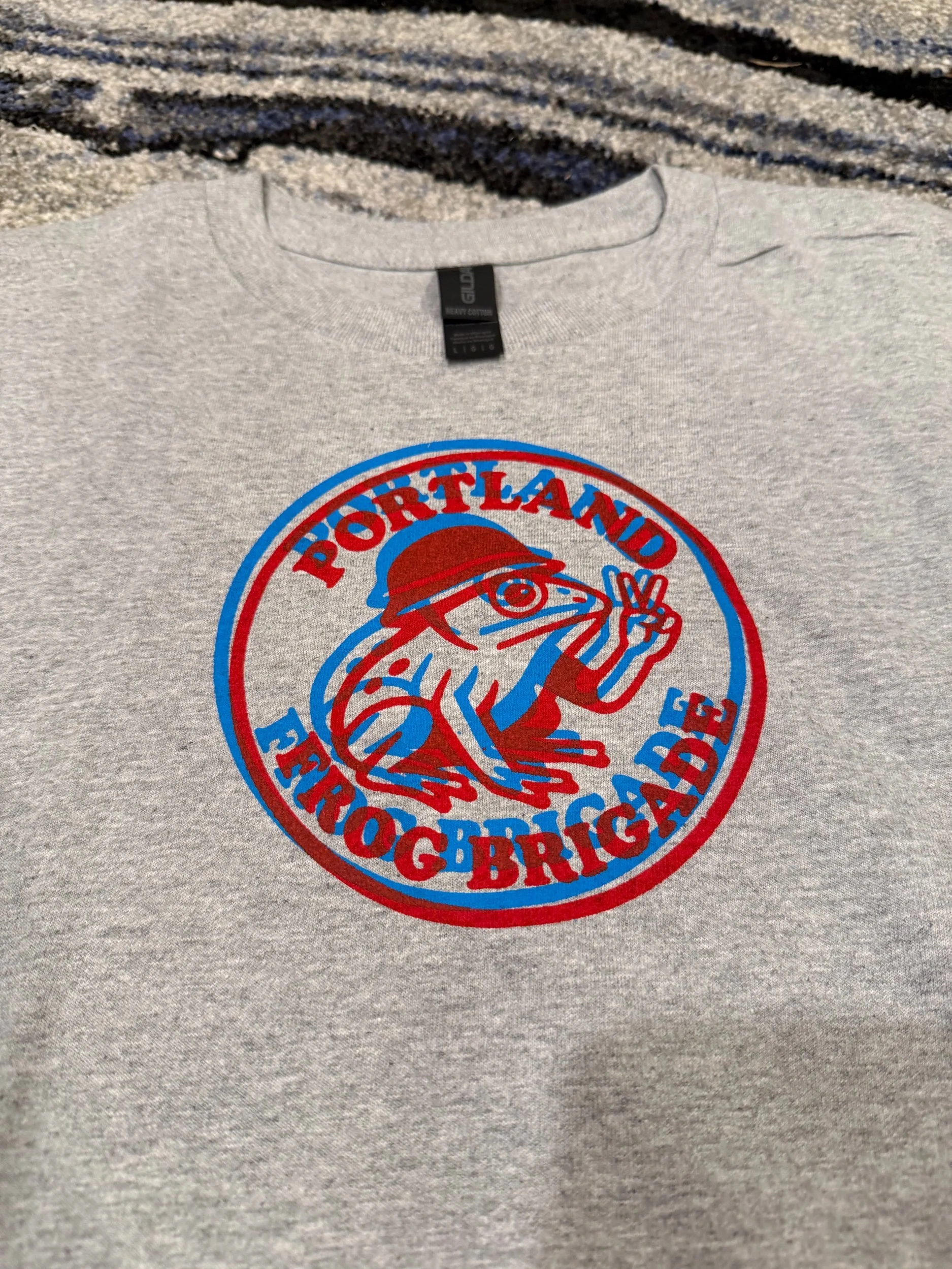 As we are creative here at the Portland fFog Brigade, I made a couple of these 3-D logo shirts. There are only two of them and they are large size short sleeve light gray.