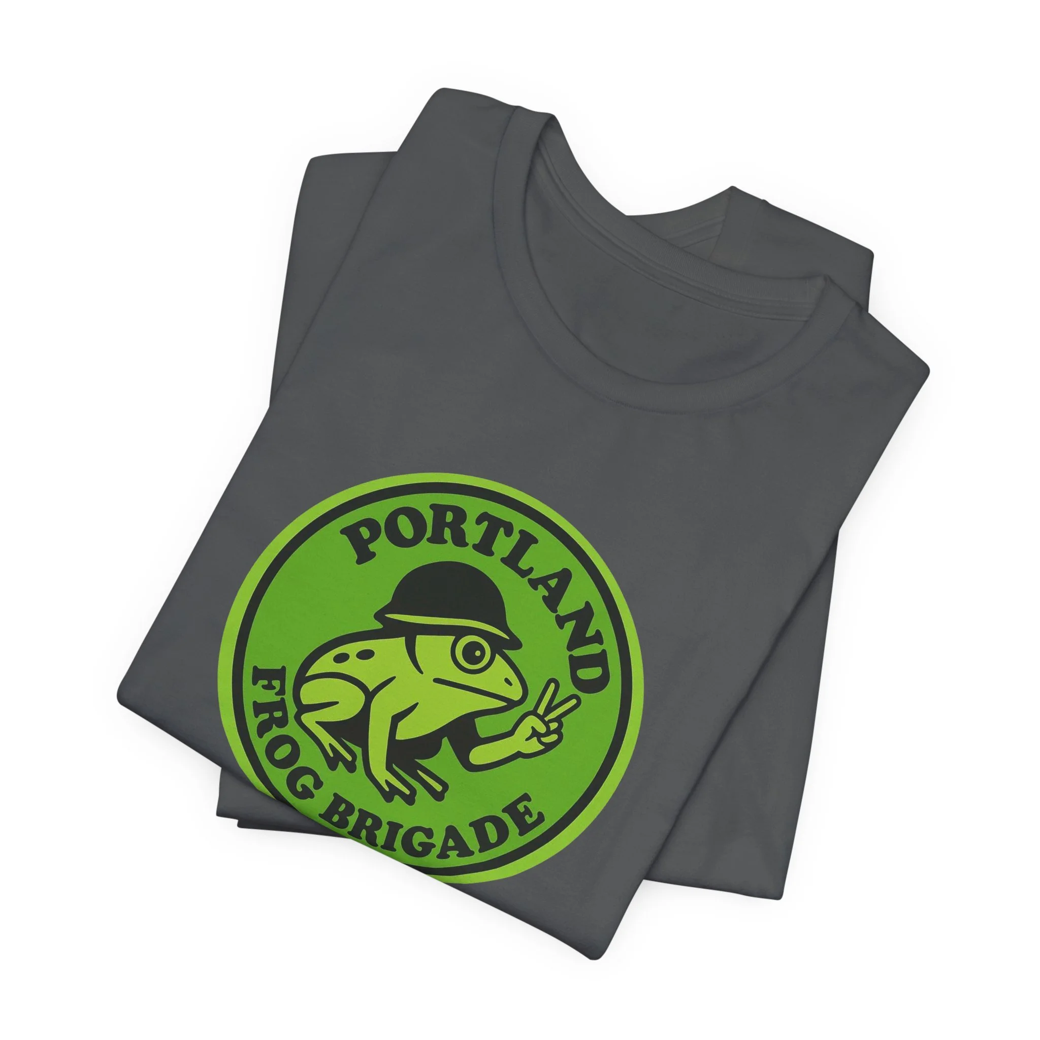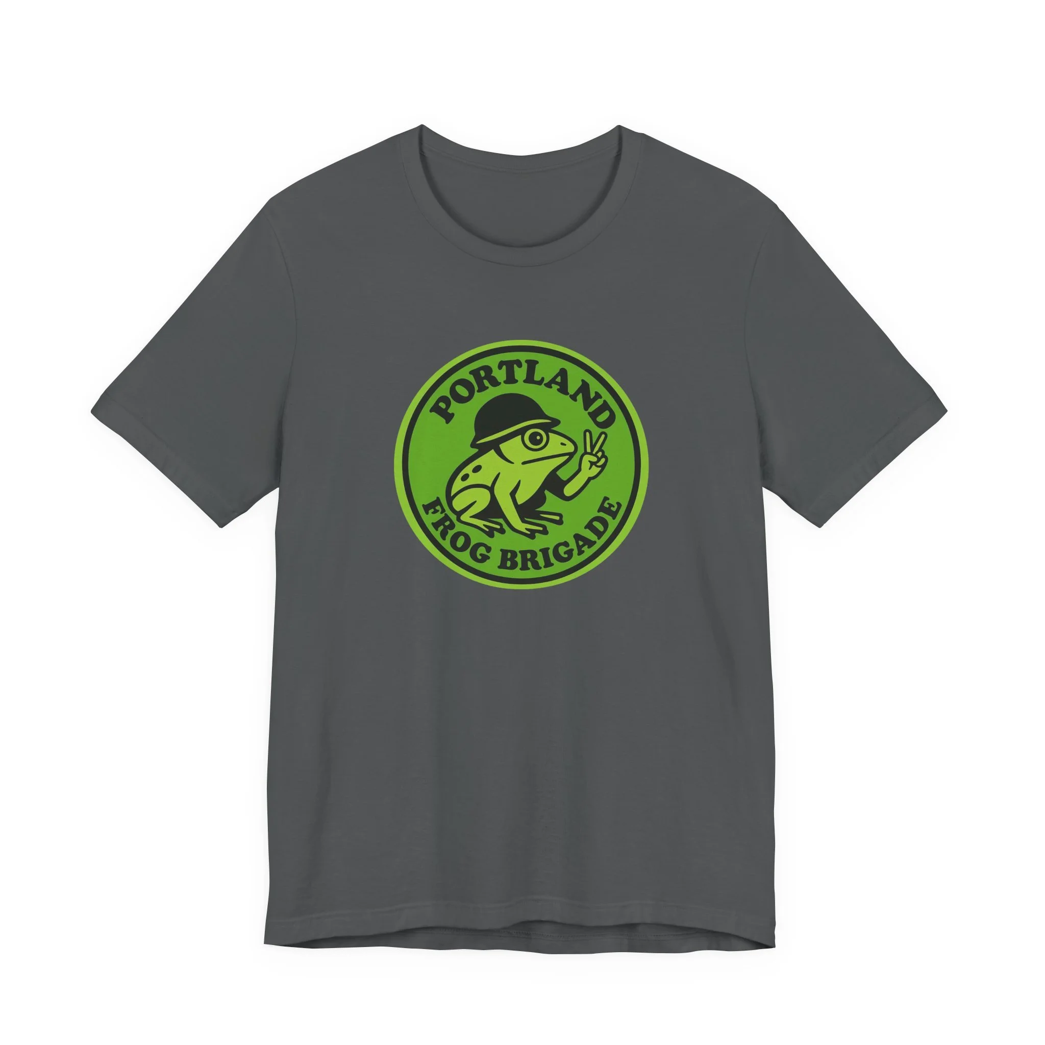 This T-shirt features the iconic Portland Frog Brigade logo—simple, bold, and instantly recognizable. It’s an awesome way to show your support, rep the brigade out in the wild, and let folks know you’re part of the fun, community, and cause. Comfortable, good-looking, and frog-approved. 🐸💚